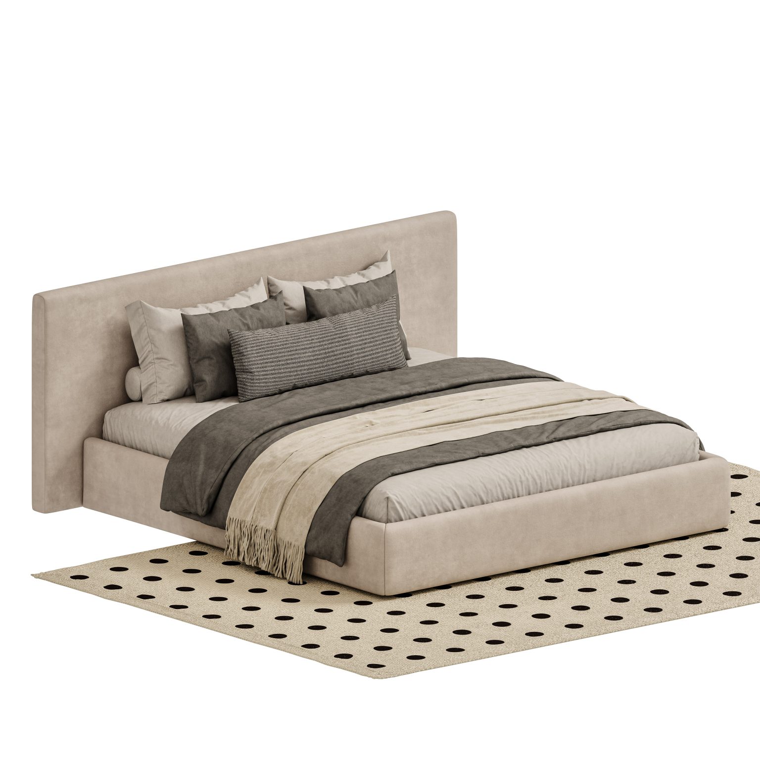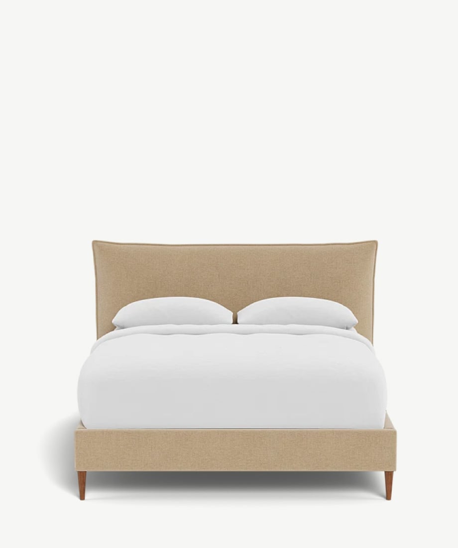 Sari bed with removable covers in beige micro bouclé with solid beech wood legs